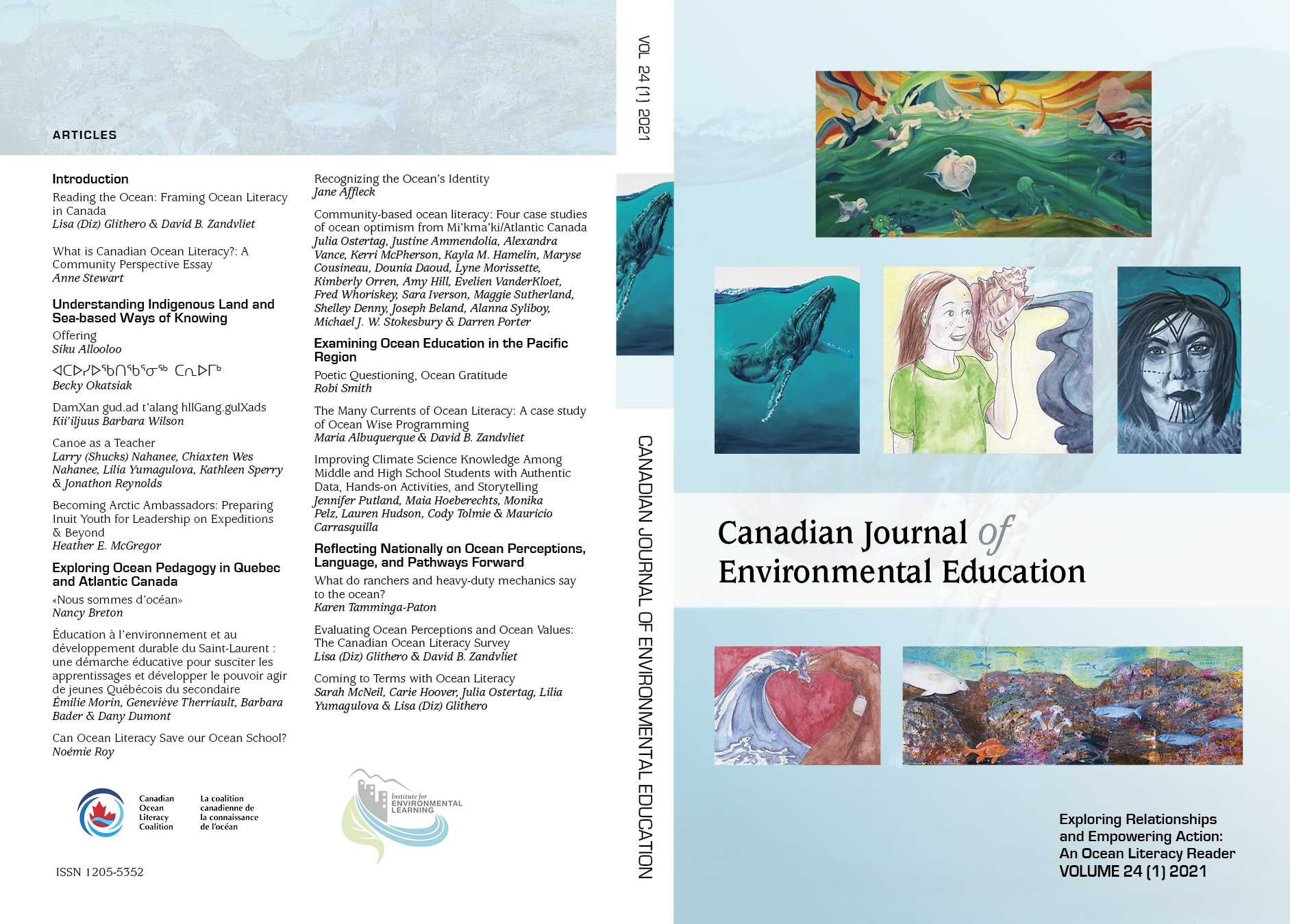 Full Cover for Volume 24(1) Authors Blair Niblett Trent University Abstract ~ Author Biography Blair Niblett, Trent University Associate Professor, Trent University, School of Education Downloads JPG Published 2021-06-07 Issue Vol. 24 No. 1 (2021): Exploring Relationships and Empowering Action: An Ocean Literacy Reader Section Complete Volume License The Canadian Journal of Environmental Education retains the copyright for published articles. Please contact the editors to request an alternate arrangement.